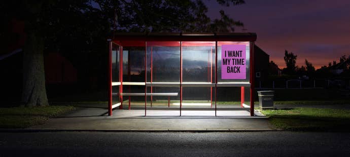 All of this struck me especially hard when I was at an exhibition, over the winter break, called 24/7. It's at Somerset House in London and is still showing for a few more weeks, if you want to go along, which I think you should, because although it's mostly a collection of slightly on-the-nose, Banksy-esque jabs at society and modern digital life, it is a remarkably, and somewhat terrifyingly potent criticism of where we seem to be heading in the world of games.