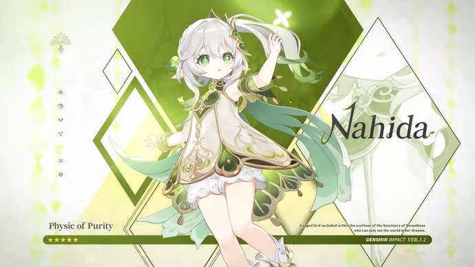 Nahida is a 5-Star Dendro character who was added to Genshin Impact during version 3.2.