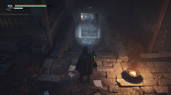 Now, head ahead the back of this house to find an entrance to the basement. It's a good idea to turn your torch on if you haven't done so already!