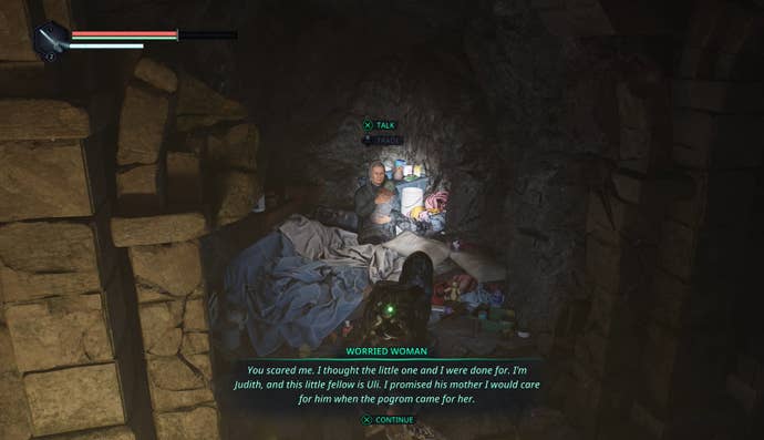 To start the Land of Milk and Honey Good Deed in Hell is Us, you need to find Judith and the baby in the tunnels beneath Jova. The easiest way to do this is to first find the house you'll need to visit for the Love Thy Neighbour Good Deed.