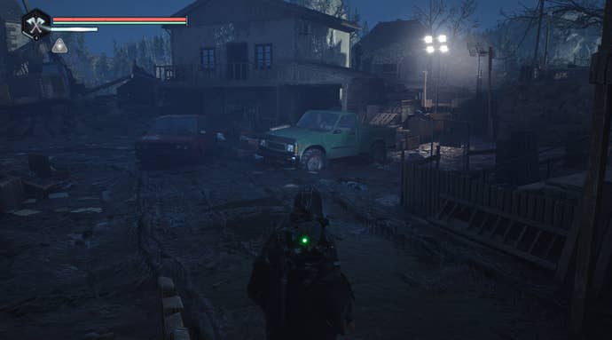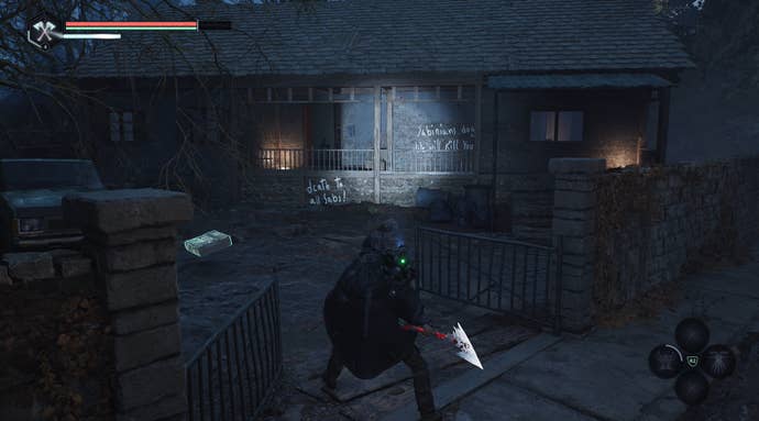 Now follow the road to your road and keep going until you've passed an area filled with enemies on your left. This will bring you to a house with graffiti on it.