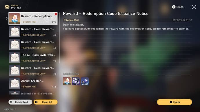 How to redeem codes in Honkai Star Rail