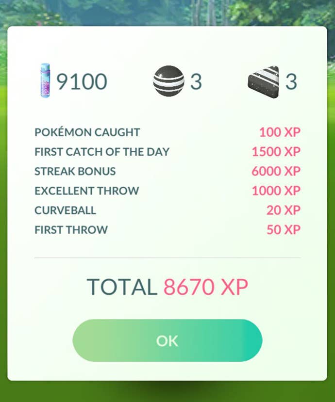 Last, but not least, it's important to make sure you always catch at least one Pokémon per day because the first catch of the day is worth 1800 extra Stardust. If you can keep up your streak seven days in a row, you can get a whopping 9000 Stardust bonus, which is huge.