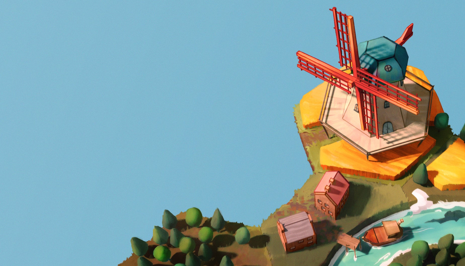 You see, the bit I've so far neglected to mention is exactly what you'll be placing. This is a game of gorgeous bucolic sprawl, new tiles revealing tiny copses that slowly expand into sweeping picturesque forests as play goes on; isolated houses that bloom into quaint villages into bustling hubs of smoke belching chimneys; train tracks that loop around lakes that split into long, lazy rivers, sail boats and canal boats chugging endlessly back and forth along their crystal blue waters. From simple tiles grow vast and serene dioramas that, inch-by-inch, piece-by-piece, begin to feel beautifully, organically alive.