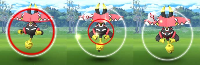 As well as the above timing and position-based captures, you can also throw Curveballs at Pokémon, which not only increases your chances of capture, but also gives you extra XP for your trouble.