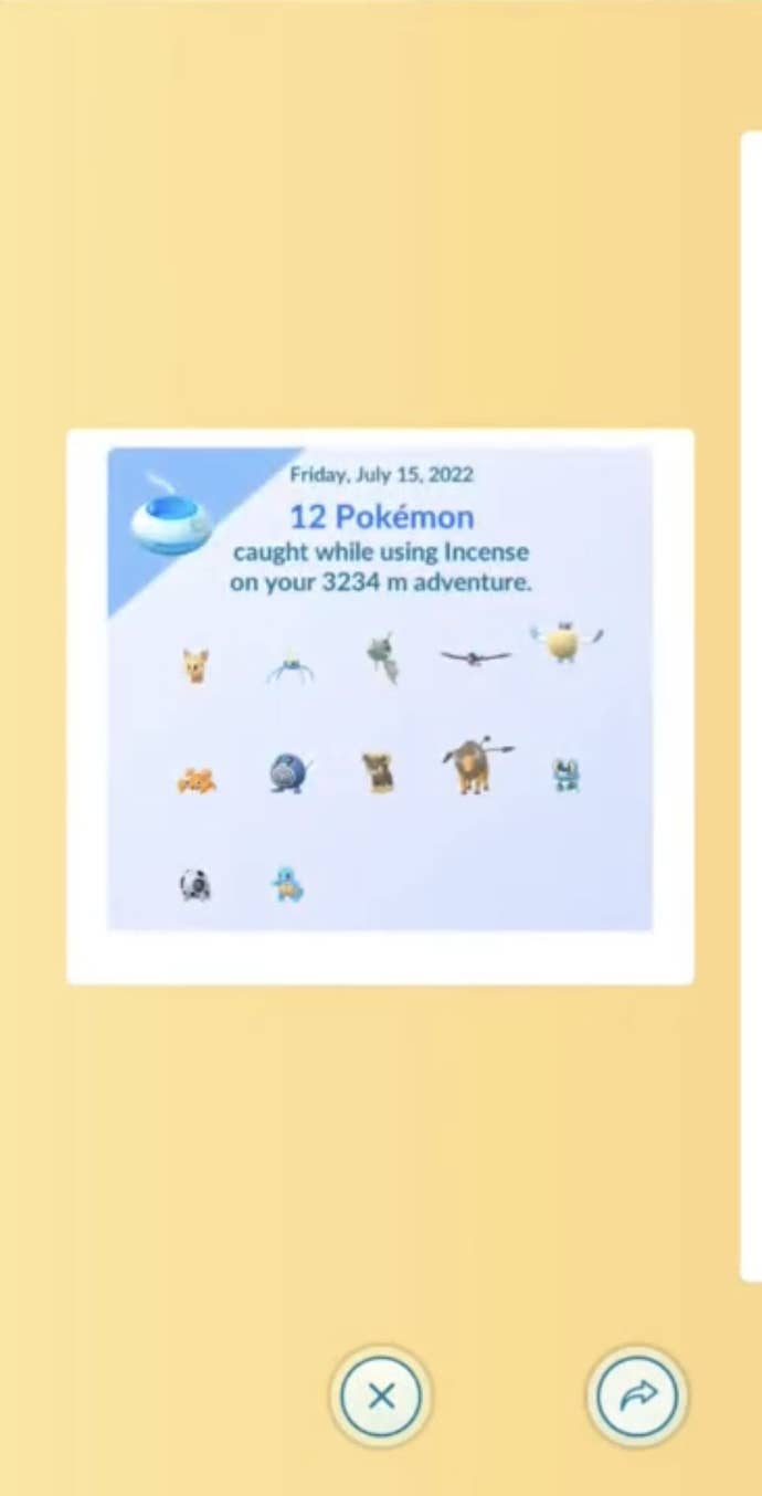 Once your 15 minutes are up, you’ll receive a recap of all the Pokémon you caught during Daily Adventure Incense.