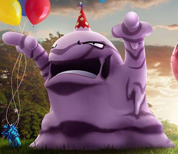 | Party Hat (Red) Grimer | 8th Anniversary Party (June 2024) - In the wild and one-star raids | ![]() |
