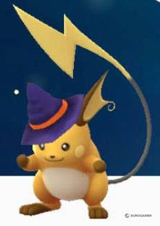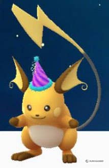 | Party Hat (Purple) Raichu | Evolve a Party Hat Pikachu using 50 Pikachu candy | ![]() |