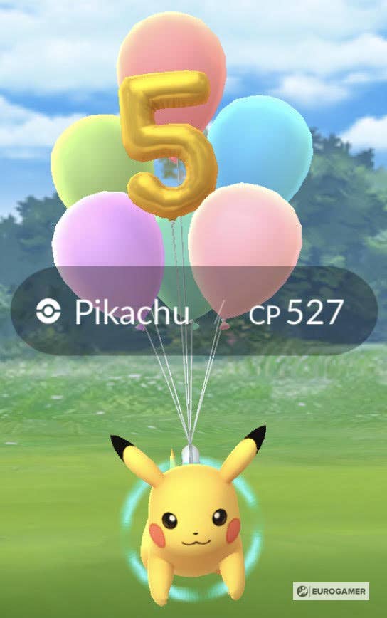 | Flying Fifth Anniversary Pikachu | Fifth Anniversary Event (July 2021) - In the wild or one-star raids | ![]() |