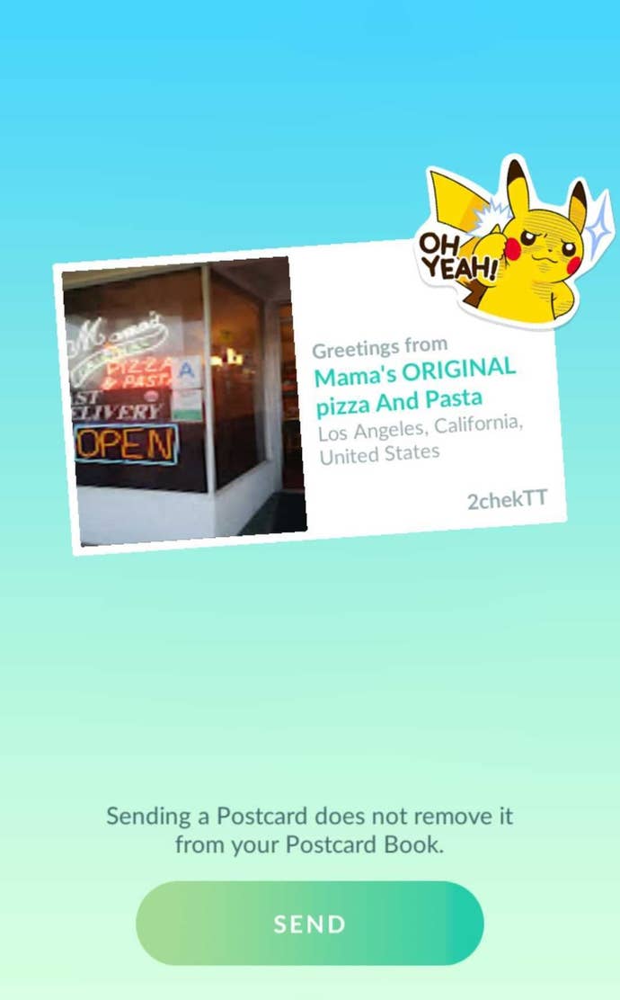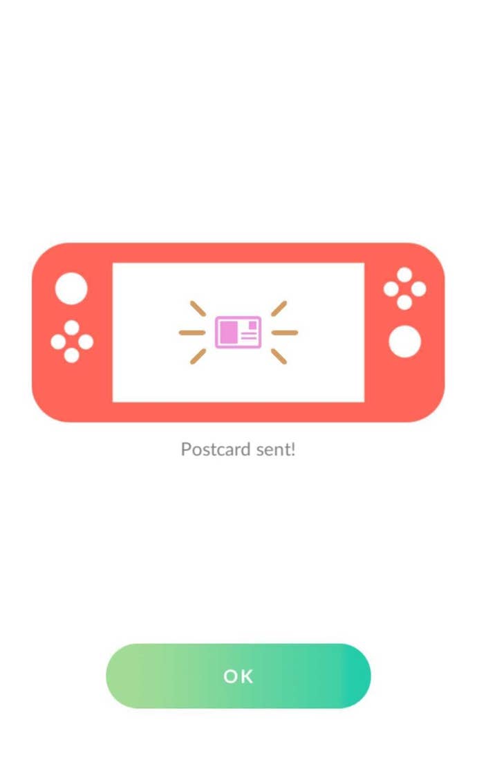 Once you've sent the Postcard from Pokémon Go, you will see an animation of you receiving a sparkly golden gift!