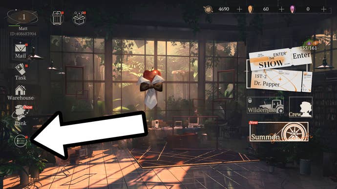 Once you’re booted into the main menu, look for the icon in the bottom left-hand corner. It should look like three lines in a circle, underneath the ‘Bank’ icon.