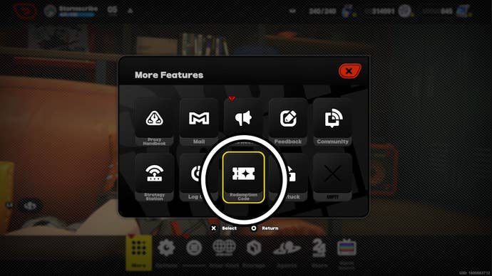 Redeem codes in-game